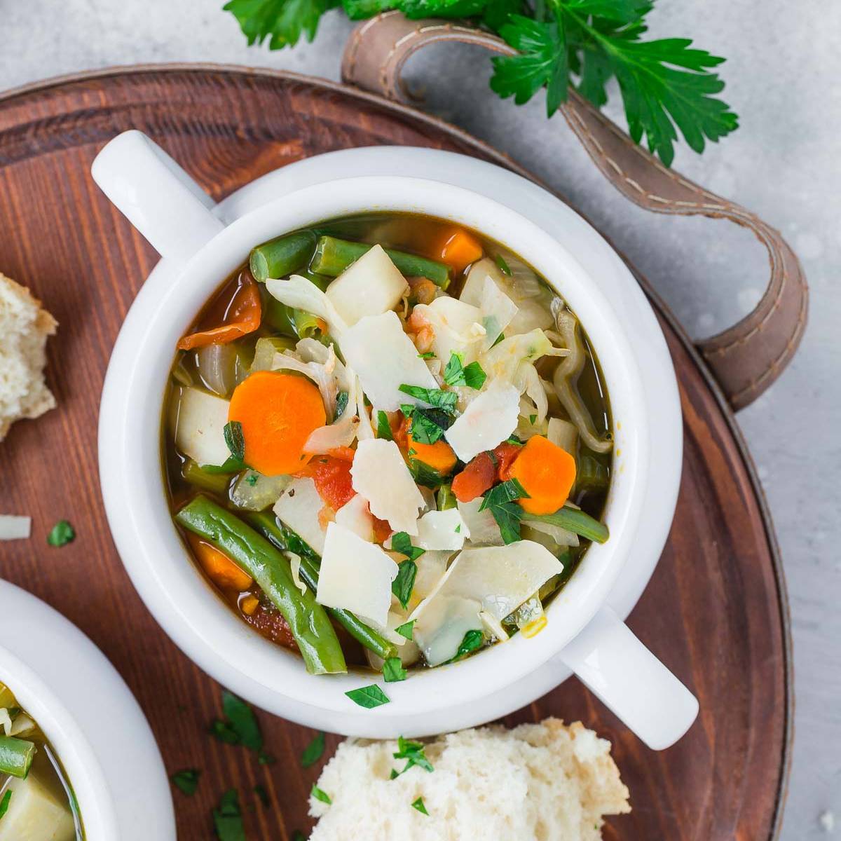 Bursting with nutritious vegetables, hearty vegetable soup made from scratch is a hundred times better than vegetable soup from a can. Pretty much any vegetable can be used in this soup; use your favorites or whatever is in your fridge.